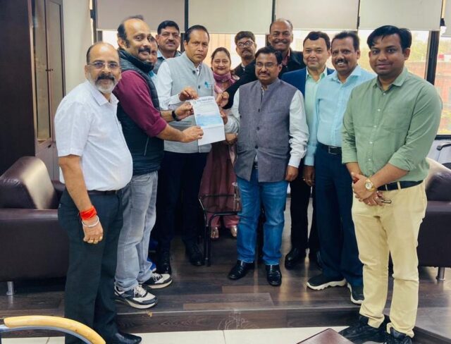 छत्तीसगढ़ शासन के आवास एवं पर्यावरण सचिव श्री महादेव कांवरे द्वारा आज रायपुर विकास प्राधिकरण द्वारा लिए गए ऋण के भुगतान की अंतिम किस्त के रूप में सेन्ट्रल बैंक ऑफ इंडिया शाखा सदर बाजार रायपुर के चीफ मैनेजर रिकवरी श्री राजीव सिंग एवं सीनियर मैनेजर श्री विमल नायर को 04 करोड़ 45 हजार 147 रूपए का चेक सौंपा गया। इसके साथ पूरी ऋण राशि का भुगतान संबंधित बैंक को कर दिया गया है। इस अवसर पर रायपुर विकास प्राधिकरण के मुख्य कार्यपालन अधिकारी श्री धर्मेश कुमार साहू सहित प्राधिकरण के अधिकारी-कर्मचारी उपस्थित थे।