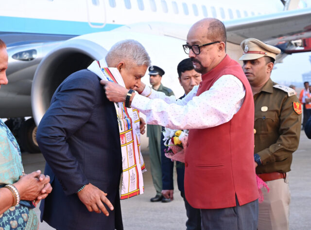 उप राष्ट्रपति जगदीश धनखड़ का माना विमानतल में आत्मीय स्वागत