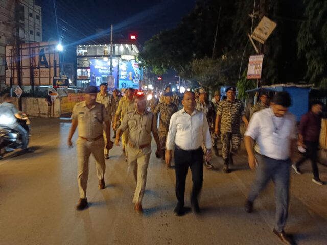 रायपुर। आगामी लोक सभा चुनाव को दृष्टिगत रखते हुये दिनांक 01.05.2024 को जिला दण्डाधिकारी रायपुर गौरव कुमार सिंह एवं वरिष्ठ पुलिस अधीक्षक संतोष कुमार सिंह के निर्देशन में अतिरिक्त पुलिस अधीक्षक शहर लखन पटले, अतिरिक्त पुलिस अधीक्षक ग्रामीण कीर्तन राठौर, अतिरिक्त पुलिस अधीक्षक पश्चिम दौलत राम पोर्ते, अतिरिक्त पुलिस अधीक्षक यातायात ओ.पी. शर्मा, समस्त नगर पुलिस अधीक्षक/उप पुलिस अधीक्षक तथा थाना प्रभारियों सहित प्रशासनिक अमला, लोकसभा चुनाव ड्यूटी हेतु उपलब्ध अर्द्धसैनिक बल सी.आर.पी.एफ एवं एस.एस.बी की 18 कम्पनियों सहित रायपुर पुलिस के सैकड़ों अधिकारियों/कर्मचारियों द्वारा शहर के विभिन्न स्थानों में फ्लैग मार्च निकाला गया।