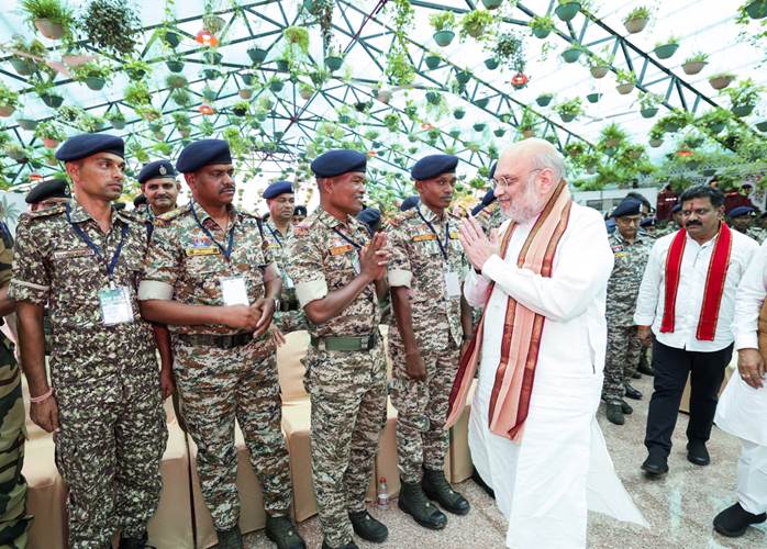 केंद्रीय गृह एवं सहकारिता मंत्री अमित शाह ने आज छत्तीसगढ़ के नवा रायपुर में सुरक्षा बलों के जवानों के साथ संवाद किया