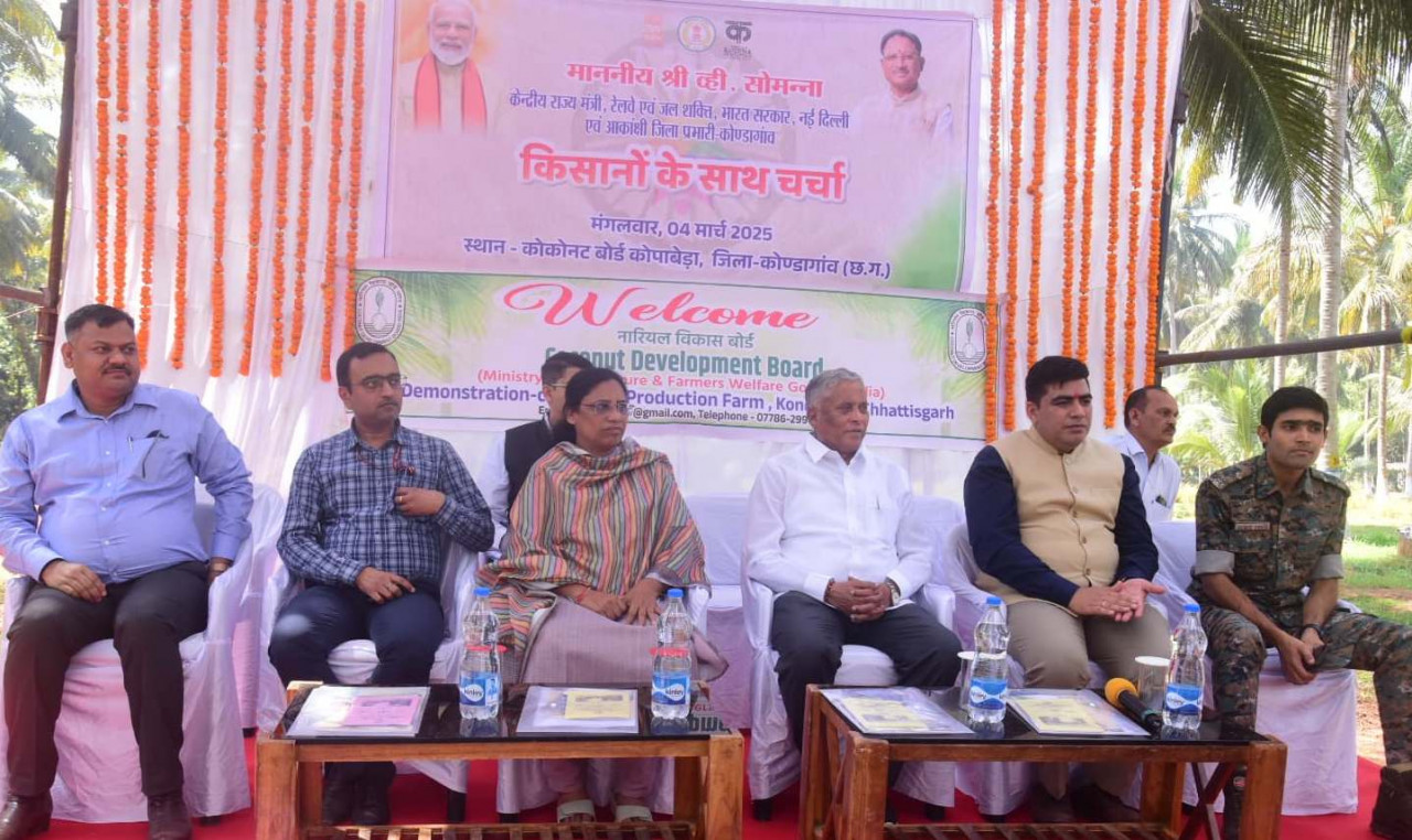 केंद्रीय मंत्री ने कहा कि कोंडागांव जिले को आकांक्षी जिले से ऊपर उठाने के लिए योजनाबद्ध तरीके से कार्य किया जाएगा। उन्होंने बड़ी संख्या में नारियल के वृक्षों को देखकर प्रसन्नता जताई और सराहना की। इस अवसर पर केंद्रीय राज्य मंत्री और अन्य अतिथियों ने नारियल के पौधे का रोपण किया।