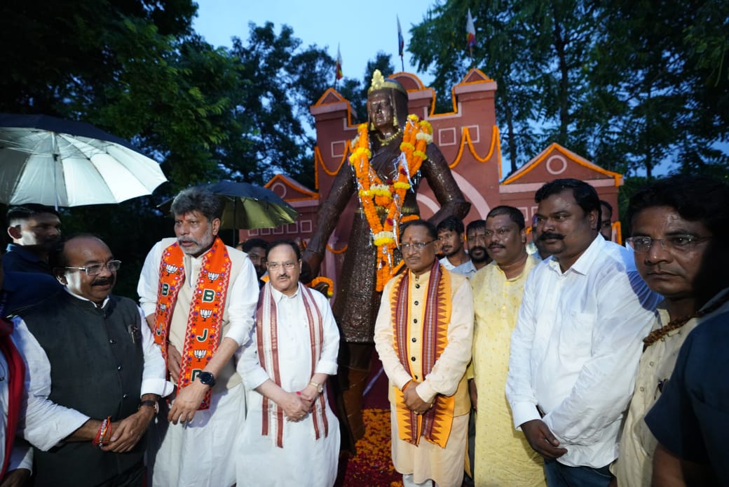 रायपुर :  भारतीय जनता पार्टी के राष्ट्रीय अध्यक्ष एवं केंद्रीय स्वास्थ्य मंत्री श्री जगत प्रसाद नड्डा आज अपने एक दिवसीय दौरे पर छत्तीसगढ़ पहुंचे। श्री नड्डा ने यहां राजधानी रायपुर के केनाल रोड, तेलीबांधा स्थित वीरांगना रानी दुर्गावती की प्रतिमा पर माल्यार्पण कर उन्हें नमन किया। इस अवसर पर मुख्यमंत्री श्री विष्णु देव साय, उपमुख्यमंत्री द्वय श्री अरुण साव एवं श्री विजय शर्मा, विधायक श्री किरण सिंह देव, साजा विधायक श्री ईश्वर साहू उपस्थित रहे।