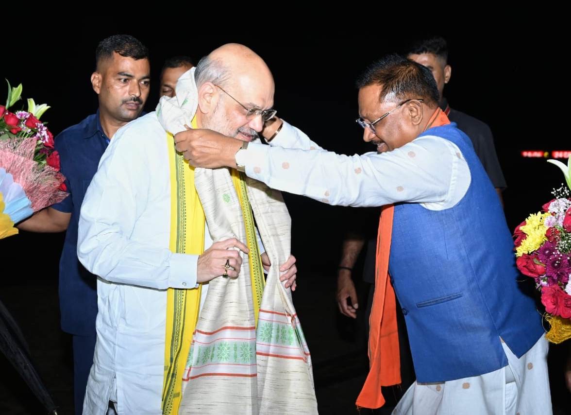 रायपुर : केन्द्रीय गृह मंत्री श्री अमित शाह छत्तीसगढ़ के तीन दिवसीय प्रवास पर आज रात राजधानी रायपुर पहुंचे। मुख्यमंत्री श्री विष्णु देव साय ने स्वामी विवेकानंद विमानतल पर केंद्रीय गृह मंत्री श्री अमित शाह का आत्मीय स्वागत किया।