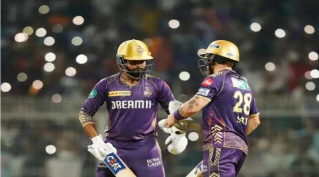 टॉस हारकर पहले बल्लेबाजी करने उतरी कोलकाता ने राजस्थान के खिलाफ सुनील नरेन की तूफानी पारी के बदौलत 20 ओवर में छह विकेट खोकर 223 रन बनाए। इस मैच में केकेआर की शुरुआत कुछ खास नहीं हुई थी। सलामी बल्लेबाजी के लिए आए फिल सॉल्ट सिर्फ 10 रन बनाकर पवेलियन लौट गए। उन्हें आवेश खान ने चौथे ओवर की तीसरी गेंद पर निशाना बनाया। इसके बाद तीसरे नंबर पर बल्लेबाजी के लिए आए अंगकृष रघुवंशी ने दूसरे विकेट के लिए नरेन के साथ 85 रन की साझेदारी निभाई। युवा बल्लेबाज ने राजस्थान के खिलाफ पांच चौकों की मदद से 30 रन बनाए। इस मुकाबले में श्रेयस अय्यर ने 11, आंद्रे रसेल ने 13 और वेंकटेश अय्यर ने आठ रन बनाए।