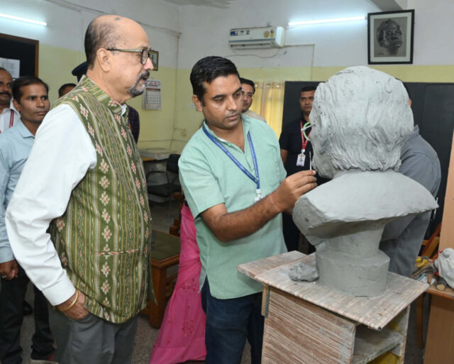 इन्दिरा कला संगीत विश्वविद्यालय खैरागढ़ में असम के प्रसिद्ध साहित्यकार श्री रघुनाथ चौधरी की कांस्य प्रतिमा आकर ले रही है। राज्यपाल एवं कुलाधिपति श्री रमेन डेका ने आज खैरागढ़ प्रवास के दौरान विश्वविद्यालय के मूर्तिकला विभाग में निर्माणाधीन प्रतिमा का का अवलोकन किया। प्रतिमा के प्रारंभिक निर्माण को देखकर राज्यपाल ने प्रसन्नता व्यक्त की और आवश्यक दिशा निर्देश दिए।