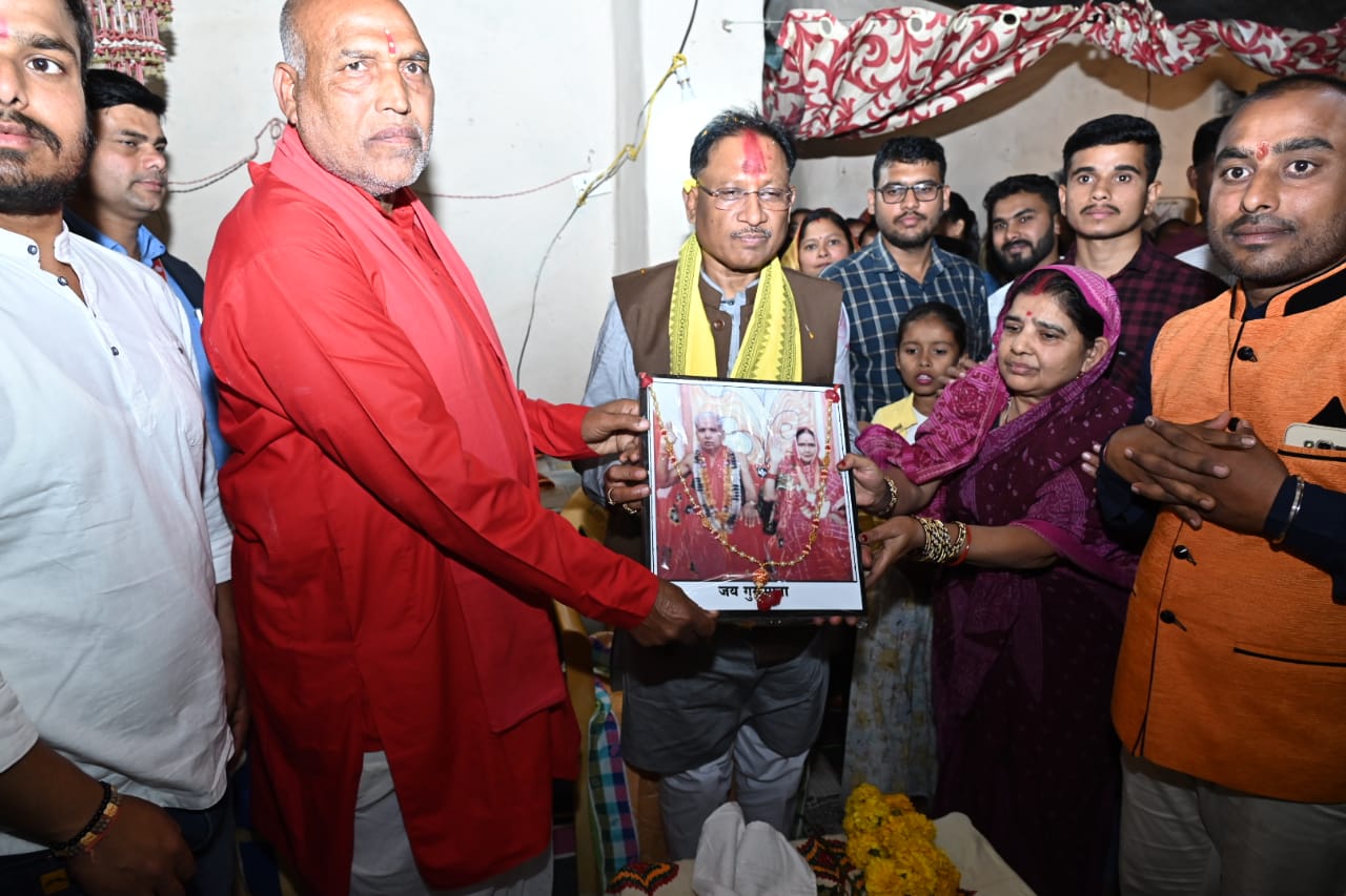 रायपुर : मुख्यमंत्री विष्णु देव साय आज भुइंयापानी में गुरु माननीय श्री श्री 108 श्री गुरुदेव स्वामी धनपती पंडा जी के निवास स्थान पहुंचे। यहां उन्होंने गुरु गद्दी को प्रणाम कर प्रदेश वासियों के सुख समृद्धि और खुशहाली की कामना की। इस मौके पर उन्होंने गुरु के परिवार जनों से मुलाकात कर उनका कुशलक्षेम जाना।