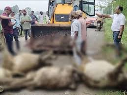 छत्तीसगढ़ के पलारी क्षेत्र में मंगलवार की सुबह गातापार-कोसमंदी मार्ग पर अलग-अलग जगहों पर 22 मृत गायें पड़ी मिली