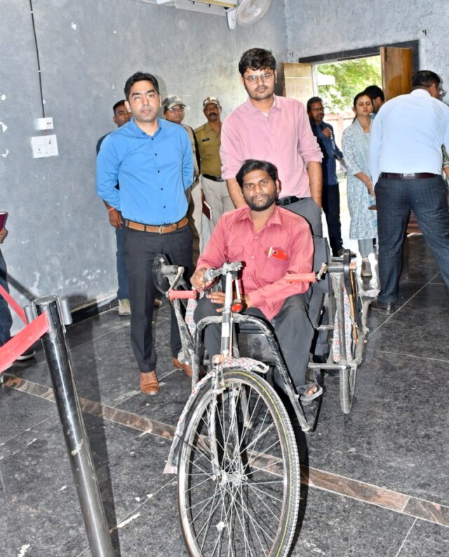 मुंगेली :  कलेक्टर श्री राहुल देव आज जनदर्शन सभा कक्ष में गांव, गरीब और आम जनों की समस्याएं सुनने उनसे रूबरू हुए। उन्होंने दूर-दराज से आए आम लोगों की समस्याओं को सुना और कई मामलों पर शीघ्र निर्णय लेते हुए मौके पर ही उनका निराकरण भी किया। जनदर्शन में विकासखण्ड पथरिया के ग्राम लमती के दिव्यांग पुरूषोत्तम ने ट्रायसायकल की मांग की। उन्होंने कहा कि ट्रायसायकल नहीं होने की वजह से आने-जाने में काफी तकलीफ होती है। कलेक्टर श्री देव ने उसकी मांग पर संवेदनशीलता से दिखाते हुए तत्काल ट्रायसायकल उपलब्ध कराने निर्देशित किया और मौके पर पुरूषोत्तम को ट्रायसायकल प्रदान किया गया।