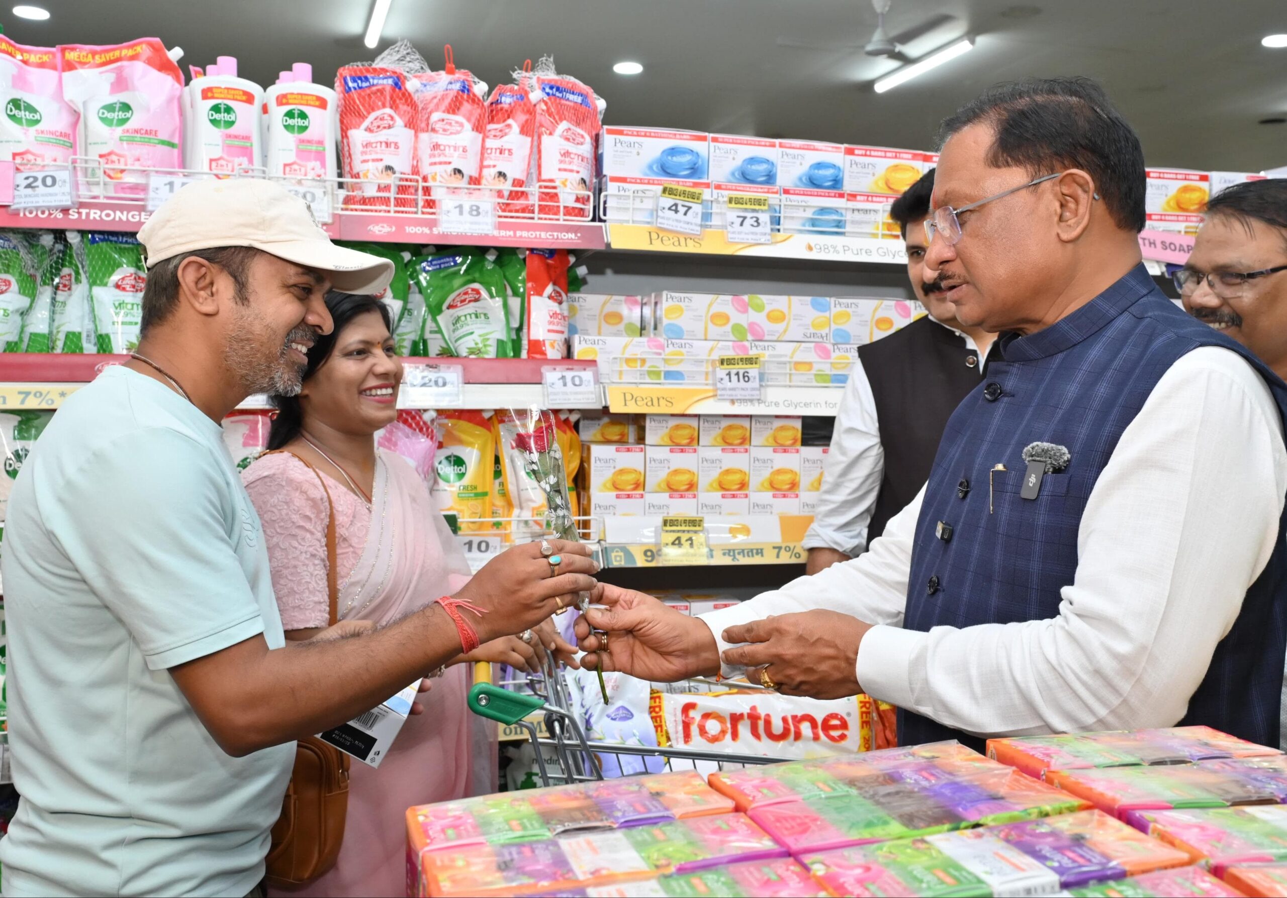 मार्ट में खरीदारी करने पहुंचे श्री मुरलीधर ने मुख्यमंत्री से बातचीत में बताया—“मैं आज केवल 4 ज़रूरी सामान खरीदने आया था, लेकिन जीएसटी दरों में कमी देखकर 4 गुना अधिक सामान खरीद लिया। जीएसटी में व्यापक सुधार से रोजमर्रा की सामग्रियाँ सस्ती हुई हैं और हमें सीधा लाभ मिल रहा है।”