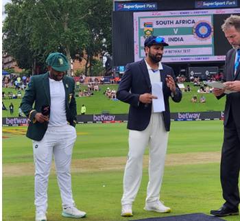 भारत और दक्षिण अफ्रीका के बीच दो मैचों की टेस्ट सीरीज़ का दूसरा और आखिरी मुकाबला केपटाउन में खेला जाना है, जिसके लिए टॉस हो चुका है. मेज़बान दक्षिण अफ्रीका ने टॉस जीतकर पहले बैटिंग करने का फैसला किया है. अपना आखिरी टेस्ट खेल रहे डीन एल्गर भारत के खिलाफ दक्षिण अफ्रीका की कमान संभाल रहे हैं. रोहित शर्मा ने भारतीय टीम में दो बदलाव किए हैं. रवींद्र जडेजा की वापसी हुई है. इसके अलावा शार्दुल ठाकुर की जगह मुकेश को प्लेइंग इलेवन में शामिल किया गया है.