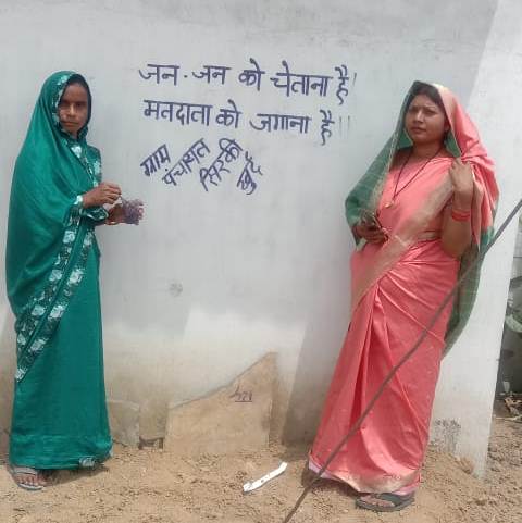 दीवारों पर नारा लेखन कर ग्रामीण मतदाताओं को किया जागरूक