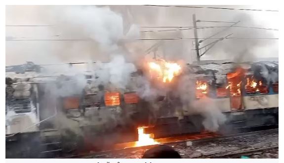 पटना । पटना से जसीडीह जा रही पैसेंजर ट्रेन में भीषण आ गई। एक कोच में लगी आग की जद में दूसरी कोच आ गई। देखते ही देखते धूकर-धूकर बॉगी जलने लगी। गनीमत रही की आग फैलने से पहले ही कोच में सवार यात्री कूद गए। कुछ ही मिनट में ट्रेन के दो कोच में आग फैल गई। इससे दो कोच पूरी तरह से जल गए। इधर, घटना की सूचना के तुरंत बाद फायर ब्रिगेड की टीम मौके पर पहुंची और आग पर काबू पाने में जुट गई। रेलवे की टीम की मदद से आग बुझाने की कोशिश की जा रही है। घटना किऊल जंक्शन के प्लेटफॉर्म संख्या चार पर हुई।
