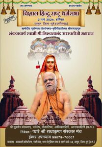 पुरीपीठाधीश्वर श्रीमज्जद्गगुरु शंकराचार्य स्वामी श्रीनिश्चलानन्द सरस्वती जी महाराज की विशाल हिंदू राष्ट्र धर्मसभा का कार्यक्रम आयोजनकर्ता पीठ परिषद, आदित्य वाहिनी, आनंद वाहिनी के मार्गदर्शन में प्यारे श्री राधा कृष्ण संस्कार मंच के तत्वावधान में संपन्न होगा।