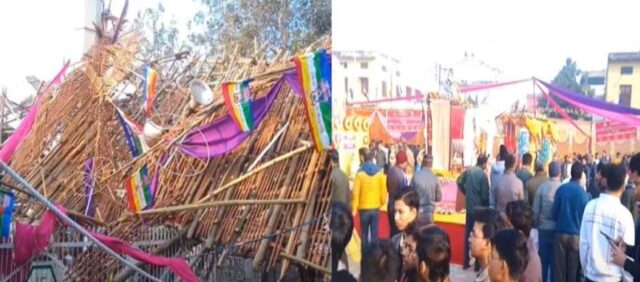 यह हादसा बड़ौत शहर कोतवाली क्षेत्र के गांधी रोड पर मंगलवार सुबह हुआ. मानस्तम्भ परिसर में बल्ली से बना मचान अचानक ढह गया, इस दौरान कई लोग उसके नीचे दब गए. इतना ही नहीं, घटना के बाद मौके पर भगदड़ भी मच गई.वहीं, सूचना मिलने पर पहुंची पुलिस ने लोगों को बचाने के लिए रेस्क्यू शुरू किया. बताया जा रहा है कि इस हादसे में करीब 6-7 पुलिसकर्मी भी घायल हुए हैं. घायलों की संख्या बढ़ सकती है, सभी को अस्पताल में भर्ती कराया गया है. मामले की जानकारी मिलते ही डीएम और एसपी ने अस्पताल पहुंचकर घायलों का हालचाल जाना है. बागपत के एसपी ने हादसे की जानकारी देते हुए बताया, बड़ौत थाना क्षेत्र में एक धार्मिक कार्यक्रम चल रहा था.