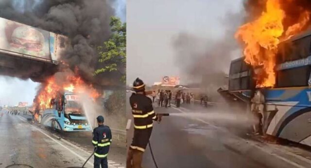 Home देश बाल-बाल बची 36 यात्रियों की जान, चलती बस में लगी भीषण आग