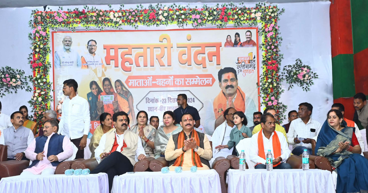 रायपुर : छत्तीसगढ़ सरकार के सुशासन के एक वर्ष पूर्ण होने पर पूरे प्रदेश में जनादेश परब के रूप में आयोजन किया जा रहा है। सुशासन का एक साल, छत्तीसगढ़ हुआ खुशहाल पर कवर्धा के वीर सावरकर भवन में भव्य महतारी वंदन माताओं, बहनों का सम्मान सम्मेलन आयोजित किया गया, जिसमें माताओं और बहनों को सम्मानित कर उनके योगदान की सराहना की गई। कार्यक्रम का शुभारंभ उपमुख्यमंत्री श्री विजय शर्मा, स्वास्थ्य मंत्री श्री श्याम बिहारी जायसवाल और सांसद श्री संतोष पांडेय ने दीप प्रज्ज्वलित कर किया। इस दौरान उन्होंने महिलाओं की भूमिका को समाज के निर्माण और प्रदेश की खुशहाली में अत्यंत महत्वपूर्ण बताया। माताओं और बहनों को सम्मानित करते हुए मंत्रीद्वय ने सुशासन के इस एक वर्ष को समर्पण और जनसेवा का प्रतीक बताया।