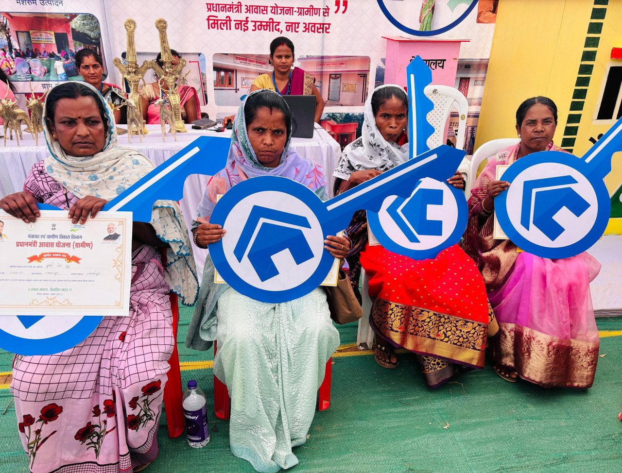 मुख्यमंत्री के हाथों बस्तर के ग्राम पंचायत बबूसेमरा की श्रीमती जुनी नाग और श्रीमती डोमीनी को मिला पक्का मकान