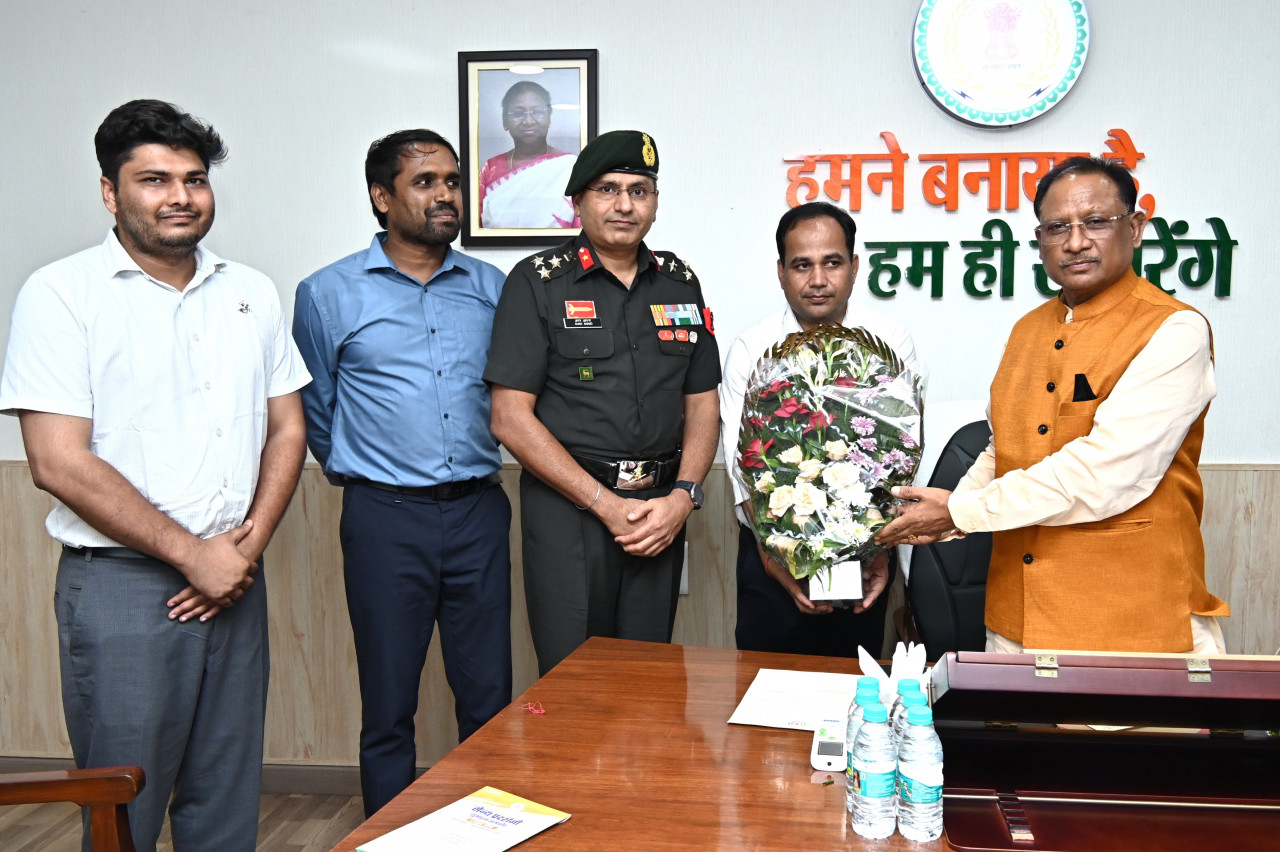 रायपुर :मुख्यमंत्री श्री विष्णु देव साय को राजधानी रायपुर में आगामी 05 और 06 अक्टूबर को आयोजित होने वाले सशस्त्र सैन्य समारोह में शामिल होने का भारतीय सेना के ब्रिगेडियर श्री अमन आनंद और कलेक्टर डॉ. गौरव सिंह ने आमंत्रण दिया।