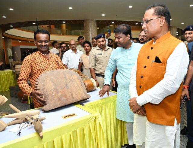 रायपुर : छत्तीसगढ़ की राजधानी रायपुर स्थित साइंस कॉलेज ग्राउंड परिसर में आज *प्रथम छत्तीसगढ़ हरित शिखर सम्मेलन का भव्य आयोजन किया गया, जिसका उद्घाटन मुख्यमंत्री श्री विष्णु देव साय ने किया। कार्यक्रम में प्रदेश की पारंपरिक वन संपदा, औषधीय उत्पादों और सांस्कृतिक धरोहर को प्रोत्साहित करने के उद्देश्य से विभिन्न विभागों द्वारा स्टॉल और प्रदर्शनी लगाई गई थी। मुख्यमंत्री ने इन स्टॉलों का भ्रमण कर उत्पादों की जानकारी ली और कलाकारों व कारीगरों के प्रयासों की सराहना की। इस अवसर पर वन एवं जलवायु परिवर्तन मंत्री श्री केदार कश्यप भी उपस्थित थे।