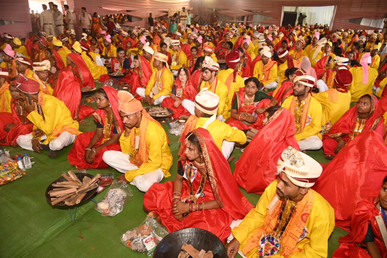 रायपुर :मुख्यमंत्री श्री विष्णु देव साय आज अखिल भारतीय निर्धन दिव्यांग सामुहिक आदर्श विवाह समारोह में मुख्य अतिथि शामिल हुए। दुर्ग के अग्रसेन भवन में समाजसेवी संस्था आस्था बहुउद्देशीय कल्याण संस्थान द्वारा आयोजित इस सामुहि आदर्श विवाह में सभी समाज के 250 दिव्यांग जोड़े परिणय सूत्र में बंधे। समारोह में छत्तीसगढ़, मध्यप्रदेश, महाराष्ट्र, उड़ीसा, झारखंड के अलावा अन्य राज्यांे के दिव्यांगजन शामिल हुए। मुख्यमंत्री श्री विष्णु देव साय एवं अन्य अतिथियों ने परिणय सूत्र में बंधे दिव्यांग नव दंपत्तियों को उनके सुखमय दाम्पत्य जीवन के लिए आशीर्वाद दिए। समारोह में लोकसभा सांसद श्री विजय बघेल, विधायक श्री ललित चंद्राकर और नगर निगम दुर्ग के महापौर श्री धीरज बाकलीवाल भी मौजूद थे।