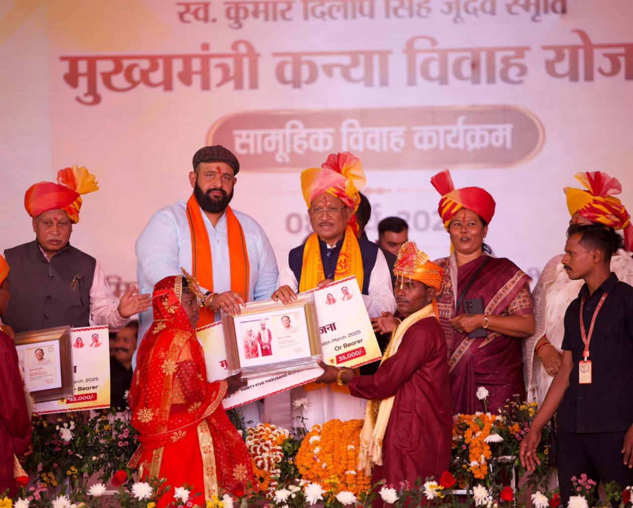 मुख्यमंत्री श्री साय ने सभी विवाहित जोड़ों पर पुष्प वर्षा कर मंगलकामना की। इस अवसर पर उन्होंने कहा कि हमारे समाज में विवाह केवल दो व्यक्तियों का नहीं, बल्कि दो परिवारों और संस्कृतियों का मिलन है। उन्होंने सभी नवदम्पतियों को प्रेम, विश्वास और समर्पण को अपने वैवाहिक जीवन का आधार बनाने की प्रेरणा दी।