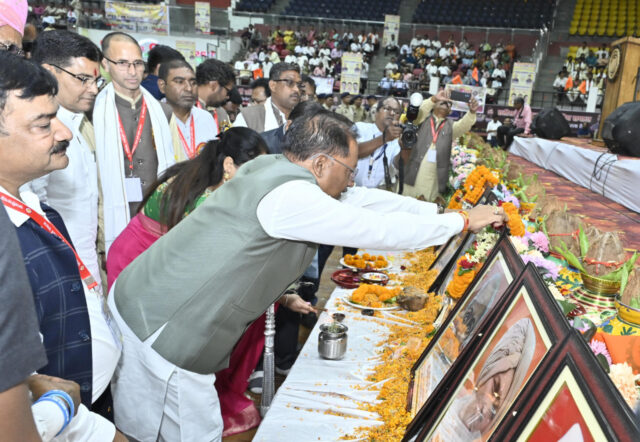 कार्यक्रम की शुरुआत अतिथियों द्वारा भारत माता, छत्तीसगढ़ महतारी और प्रदेश की महान विभूतियों के छायाचित्रों पर माल्यार्पण एवं दीप प्रज्वलन के साथ हुई।