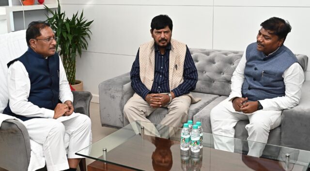 मुख्यमंत्री विष्णु देव साय से केंद्रीय राज्यमंत्री रामदास अठावले ने की सौजन्य मुलाकात