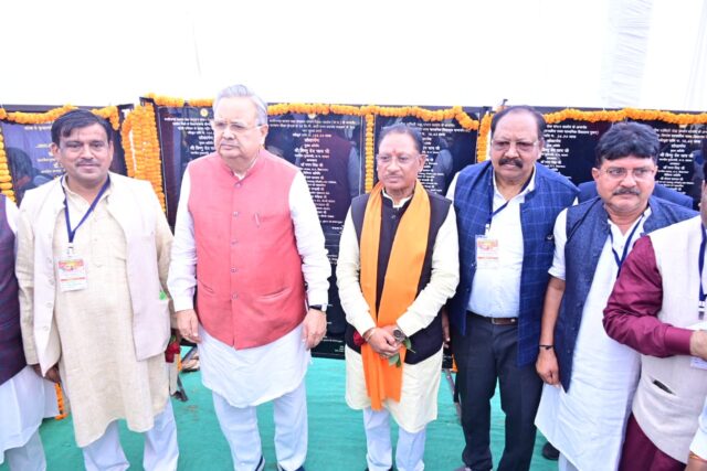 मुख्यमंत्री श्री विष्णु देव साय ने विकसित भारत संकल्प यात्रा के शिविर में कृषि विभाग, महिला बाल विकास विभाग, खाद्य विभाग, जिला अग्रणी बैंक, मुख्यमंत्री कौशल विकास योजना के स्टालों का अवलोकन किया।