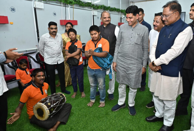 रायपुर : मुख्यमंत्री श्री विष्णु देव साय ने आज बलौदाबाजार में कृषि उपज मंडी परिसर में संचालित मनोविकास केंद्र का अवलोकन किया। उन्होंने विशेष आवश्यकता वाले बच्चों से आत्मीय बातचीत कर उनकी प्रगति की जानकारी ली और अभिभावकों से फीडबैक प्राप्त किया। बच्चों द्वारा प्रस्तुत योग, संगीत और सांस्कृतिक गतिविधियों को देखकर मुख्यमंत्री भावविभोर हो उठे और उनकी प्रतिभा की मुक्त कंठ से सराहना की।