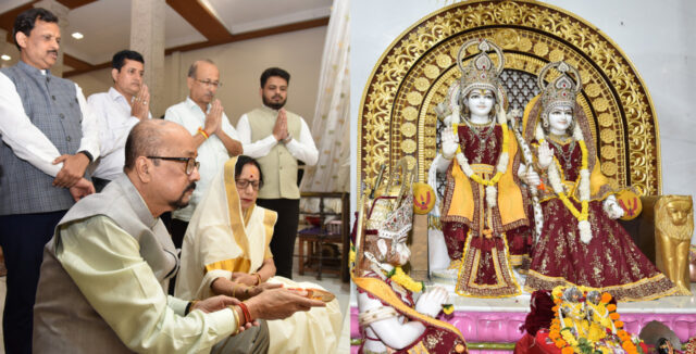 रायपुर : राज्यपाल रमेन डेका ने रायपुर के विशाल नगर स्थित राम मंदिर पहुंचकर भगवान श्री राम के दर्शन कर विधिवत पूजा अर्चना की और छत्तीसगढ़ के समस्त देश-प्रदेश वासियों की सुख समृद्धि एवं खुशहाली की कामना कीं। इस अवसर पर प्रथम महिला श्रीमती रानी डेका काकोटी भी उपस्थित थी।