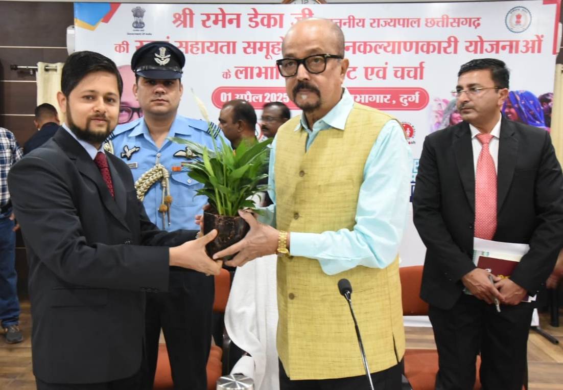 रायपुर :राज्यपाल श्री रमेन डेका ने दुर्ग जिला प्रवास के दौरान आज प्रशासनिक अधिकारियों की समीक्षा बैठक ली। उन्होंने विभिन्न प्रशासनिक मुद्दों पर ठोस दिशा-निर्देश दिए, जिसमें पर्यावरण संरक्षण, सड़क सुरक्षा, नशा मुक्ति, जल संरक्षण और स्व सहायता समूहों को सशक्त बनाने की दिशा में प्रयासों को आगे बढ़ाने की आवश्यकता पर जोर दिया। इस दौरान उन्होंने शासकीय योजनाओं से लाभान्वित हितग्राहियों से चर्चा की और उनसे प्राप्त हो रही आमदनी के बारे में जानकारी प्राप्त की।