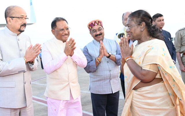 रायपुर :राष्ट्रपति श्रीमतीद्रौपदी मुर्मु अपने दो दिवसीय छत्तीसगढ़ प्रवास के बाद आज शाम विशेष विमान से नई दिल्ली के लिए रवाना हुईं। राजधानी रायपुर के स्वामी विवेकानंद एयरपोर्ट पर राज्यपाल श्री रमेन डेका, मुख्यमंत्री श्री विष्णु देव साय, उपमुख्यमंत्री श्री अरूण साव, सांसद रायपुर श्री बृजमोहन अग्रवाल सहित अन्य जनप्रतिनिधि, मुख्य सचिव श्री अमिताभ जैन, डीजीपी श्री अशोक जुनेजा ने उन्हें भावभीनी विदाई दी।