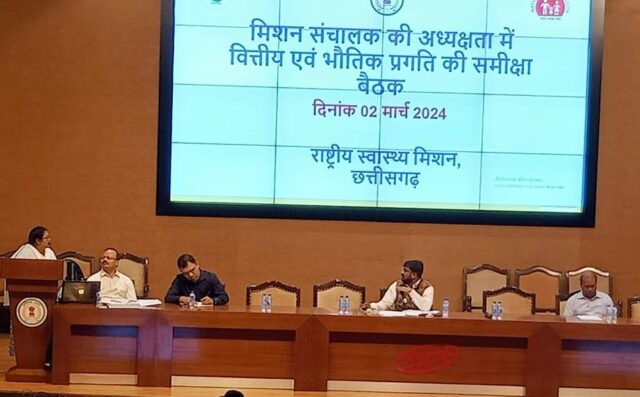 रायपुर : राष्ट्रीय स्वास्थ्य मिशन के मिशन संचालक डॉ.जगदीश सोनकर ने आज राजधानी रायपुर के न्यू सर्किट हाउस में बैठक लेकर राष्ट्रीय स्वास्थ्य मिशन के कार्यों की समीक्षा की। उन्होंने राष्ट्रीय स्वास्थ्य मिशन के संयुक्त संचालक डॉ सुरेंद्र पामभोई, राज्य कार्यक्रम प्रबंधक श्री आनंद साहू एवं अन्य वरिष्ठ अधिकारियों के साथ सभी जिलों से आए जिला कार्यक्रम प्रबंधक,लेखा प्रबंधक एवं जिला डेटा प्रबंधक की बैठक लेकर स्वास्थ्य सेवाओं और मिशन द्वारा संचालित योजनाओं की समीक्षा की।