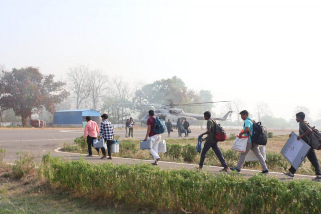 बस्तर लोकसभा निर्वाचन क्षेत्र अंतर्गत जिला बीजापुर, सुकमा एवं नारायणपुर में आज 56 मतदान दलों को हेलीकाप्टर से रवाना किया गया। 17 अप्रैल को जिला बीजापुर, सुकमा, कोंडागांव, दंतेवाड़ा एवम नारायणपुर में 100 मतदान दलों को हेलीकाप्टर के माध्यम से रवाना किया जाएगा।