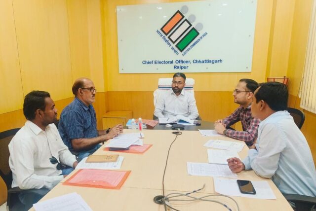 रायपुर : अतिरिक्त मुख्य निर्वाचन पदाधिकारी श्री नीलेशकुमार महादेव क्षीरसागर की अध्यक्षता में आज मुख्य निर्वाचन पदाधिकारी कार्यालय के सभाकक्ष में लोकसभा निर्वाचन-2024 के दृष्टिगत सेवा मतदाताओं से डाक मतपत्रो की वापसी के संबंध में डाक विभाग के अधिकारियों के साथ बैठक आयोजित की गई।
