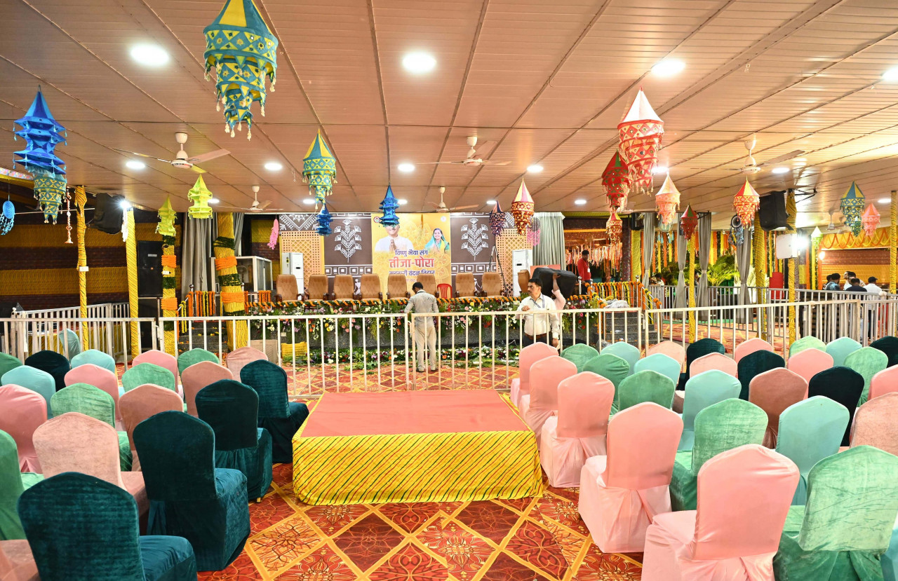 रायपुर : ‘‘विष्णु भैया संग तीजा-पोरा महतारी वंदन तिहार’’ के लिए मुख्यमंत्री श्री विष्णु देव साय का रायपुर निवास सज-धज कर तैयार है। मुख्यमंत्री निवास में दो सितम्बर को पूर्वान्ह 11 बजे से 1 बजे तक तीजा-पोरा महतारी वंदन तिहार का आयोजन किया गया है। मुख्यमंत्री श्री विष्णु देव साय ने आज शाम अपने निवास पर तिहार की तैयारियों का जायजा लिया। उन्होंने अतिथियों की बैठक व्यवस्था, पूजा स्थल, मंच आदि व्यवस्थाएं देखीं। इस अवसर पर वित्त मंत्री श्री ओ.पी. चौधरी, मुख्यमंत्री के सचिव श्री पी. दयानंद और श्री बसवराजु एस. भी उपस्थित थे।