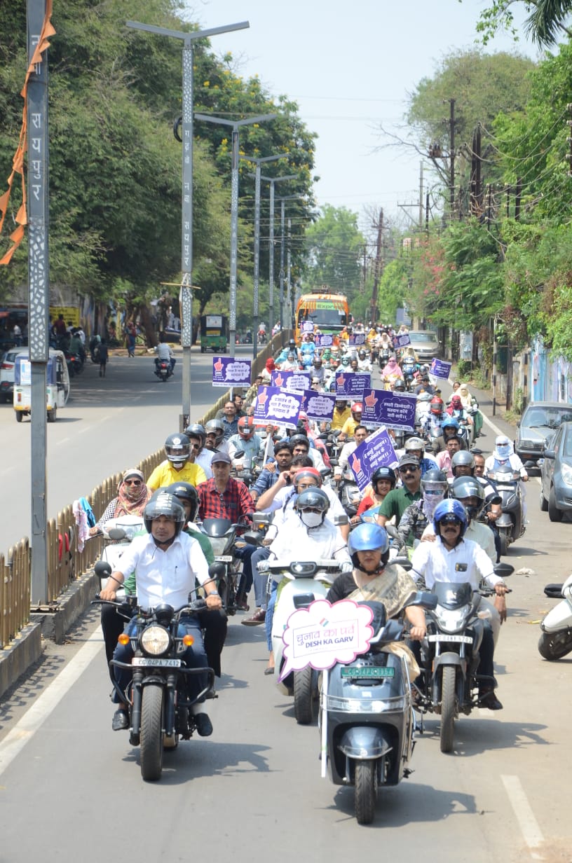 लोकसभा निर्वाचन-2024 अंतर्गत मुख्य निर्वाचन पदाधिकारी श्रीमती रीना बाबासाहेब कंगाले ने मतदाताओं को अपने मताधिकार का प्रयोग करने के लिए जागरूक करने हेतु रायपुर जिले में आज आयोजित बाइक रैली एवं स्वीप एक्सप्रेस को हरी झण्डी दिखाकर रवाना किया। उन्होंने कहा कि मतदान तिथि को सभी मतदाता अपने घरों से बाहर निकलकर मतदान केंद्र पहुंचकर अपने मताधिकार का अवश्य उपयोग करें।