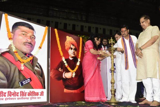 शहीद श्री विनोद सिंह स्मृति ट्रस्ट के अध्यक्ष श्री दिलेंद्र कौशिल ने स्वागत भाषण दिया। उन्होंने शहीद विनोद कौशिक का जीवन परिचय भी दिया। सीजी पुलिस में वे उप निरीक्षक के पद पर कार्यरत थे।वर्ष 2018 में नारायणपुर जिले में नक्सलियों से लोहा लेते हुए वीर गति को प्राप्त किए। शहर के चिंगराज पारा निवासी नेत्र से दिव्यांग कलाकार भाई बहन श्री पृथ्वीराज व पूजा ने भजनों और देशभक्ति पूर्ण गानों की शानदार प्रस्तुति से सबका मन मोह लिया। शहीद विनोद सिंह के माता पिता और पत्नी का भी मुख्य अतिथि श्री तोखन साहू ने नमन किया। इस अवसर पर अध्यक्ष रामदेव कुमावत, जिला पंचायत सदस्य श्रीमती नूरी कौशिल सहित बड़ी संख्या में छात्र छात्राएं, अभिभावक, शिक्षक और गणमान्य नागरिक उपस्थित थे।