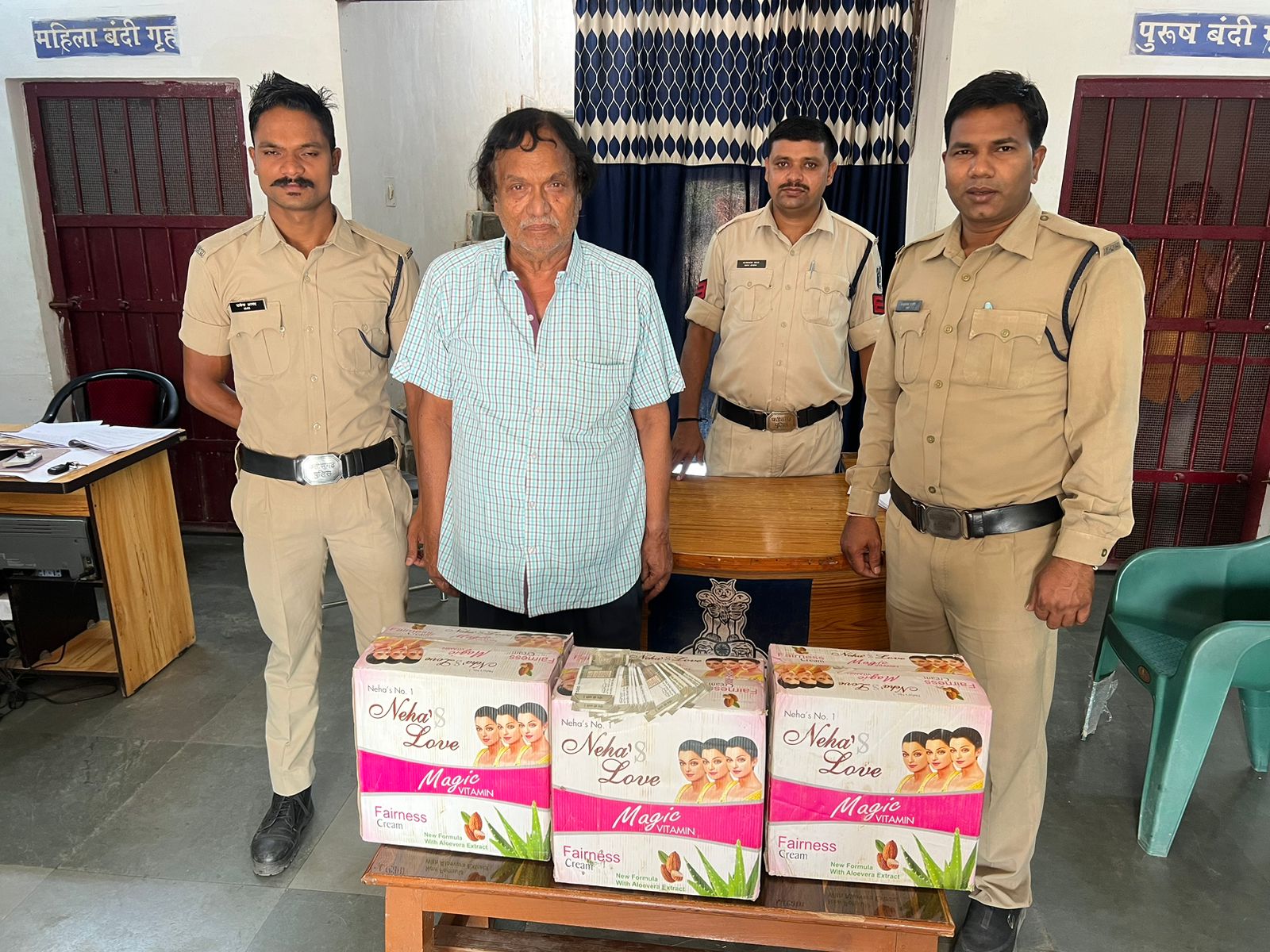 जप्ती– एक मारूति बलेनो कार, 7,000 रूपये नगदी रकम, 03 पेटी नकली ब्यूटी क्रीम।