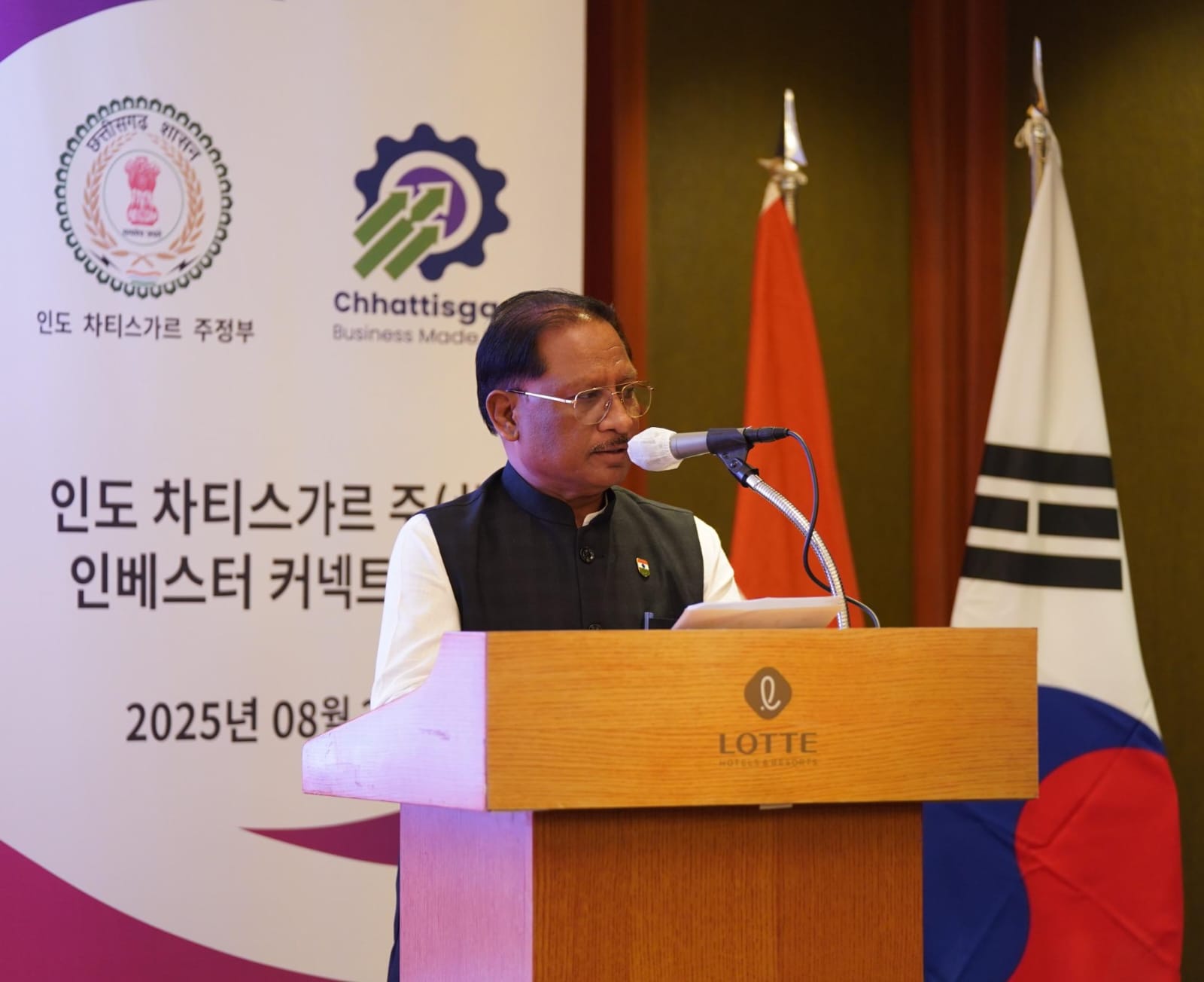 मुख्यमंत्री श्री विष्णु देव साय ने अपने दक्षिण कोरिया प्रवास के दौरान सियोल में आयोजित छत्तीसगढ़ इन्वेस्टर कनेक्ट कार्यक्रम में भाग लिया, जिसका आयोजन इंडियन चेम्बर ऑफ कॉमर्स इन कोरिया (ICCK) के सहयोग से किया गया। इस अवसर पर मुख्यमंत्री ने कहा कि छत्तीसगढ़ दक्षिण कोरियाई कंपनियों के लिए असीम संभावनाओं की धरती है। उन्होंने उल्लेख किया कि दक्षिण कोरिया भारत के शीर्ष तीन इस्पात निर्यात गंतव्यों में शामिल है और छत्तीसगढ़, देश का अग्रणी इस्पात उत्पादक राज्य होने के नाते, इस सहयोग को और गहरा करने तथा निवेश के नए अवसर प्रदान करने के लिए तैयार है।