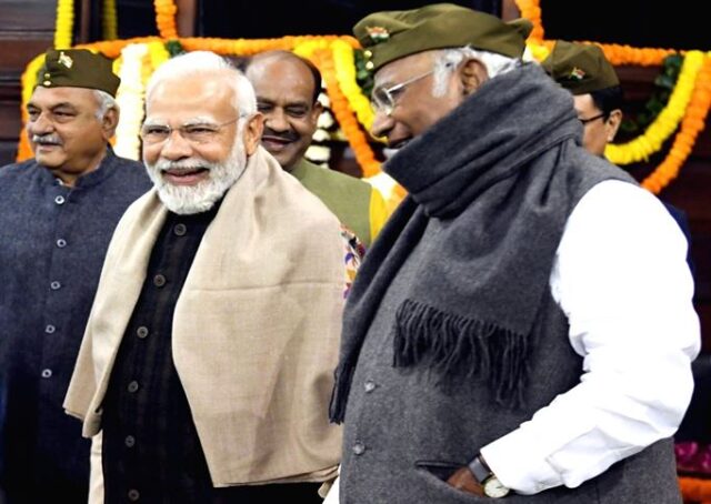 प्रधानमंत्री नरेंद्र मोदी समेत कई नेताओं ने मंगलवार को पराक्रम दिवस के मौके पर स्वतंत्रता सेनानी नेताजी सुभाष चंद्र बोस को श्रद्धांजलि अर्पित की। संसद के संविधान सदन में पीएम मोदी समेत कई नेताओं ने पहुंचकर नेताजी की तस्वीर पर फूल भी चढ़ाए। इस दौरान पीएम के साथ राज्यसभा में नेता प्रतिपक्ष और कांग्रेस अध्यक्ष मल्लिकार्जुन खरगे साथ खड़े दिखाई दिए। दोनों ने श्रद्धांजलि के बाद कुछ पर साथ में बातें भी कीं। इस दौरान लोकसभा स्पीकर ओम बिरला भी साथ रहे।पीएम मोदी ने सोशल मीडिया प्लेटफॉर्म एक्स पर भी एक पोस्ट किया इसमें उन्होंने कहा, ‘‘पराक्रम दिवस पर भारत के लोगों को बधाई। आज नेताजी सुभाष चंद्र बोस की जयंती पर हम उनके जीवन और साहस का सम्मान करते हैं। हमारे देश की स्वतंत्रता के लिए उनका अटूट समर्पण आज भी प्रेरित करता है।’’