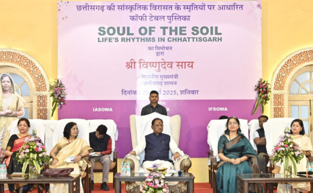 हमारी सांस्कृतिक विरासत को सहेजने से न केवल वर्तमान पीढ़ी ज्ञानवान बनेगी बल्कि, आने वाली पीढ़ी भी गौरवान्वित होगी। सोल ऑफ द सॉयल छत्तीसगढ़ में जीवन की लय को सहेजने का एक सुंदर प्रयास है। मुख्यमंत्री श्री विष्णु देव साय ने यह बातें आज अंतर्राष्ट्रीय महिला दिवस के अवसर पर राजधानी रायपुर के छत्तीसगढ़ क्लब में छत्तीसगढ़ की सांस्कृतिक विरासत के स्मृतियों पर आधारित कॉफी टेबल बुक “सोल ऑफ द सॉयल लाइफ्स रिदम्स इन छत्तीसगढ़” का विमोचन करते हुए कही। उल्लेखनीय है कि यह कॉफी टेबल बुक आईएएस, आईपीएस और आईएफएस ऑफिसर्स वाइफ्स एसोसिएशन की संयुक्त परिकल्पना है।