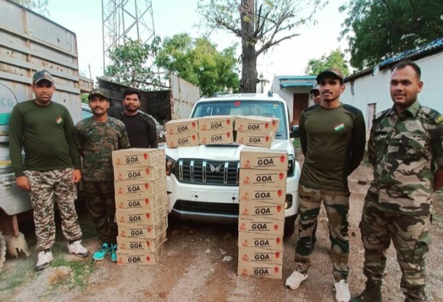 उक्त वाहन को गवाहो की उपस्थिति में चेक करने पर वाहन के पीछे सीट एवं डिक्की में काले रंग के कपडो से ढका कुल 33 पेटी मध्यप्रदेश निर्मित गोवा व्हिस्की अंग्रेजी शराब मिला जिसके 30 पेटीयों में प्रत्येक में 50 नग पौवा कुल 1500 नग सभी में 180 एमएल भरा हुआ 270 बल्क लीटर कीमती 165000 रूपये एवं 03 पेटीयों में सभी पेटियों 12 नग कुल 36 नग सभी में 750 एमएल शराब भरा हुआ कुल 27 बल्क लीटर शराब कीमती 19620 रूपये मिलने गवाहो के समक्ष विधिसम्मत कार्यवाही कर 297 बल्क लीटर मध्यप्रदेश निर्मित गोवा व्हिस्की अंग्रेजी शराब एवं घटना में प्रयुक्त बिना नंबर का स्कार्पियों वाहन सफेद रंग का कीमती 15,00,000 रूपये कुल कीमती 16,84,620 रूपये जप्त कर पुलिस कब्जा लिया गया।