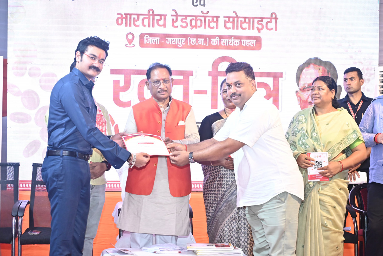 मुख्यमंत्री श्री विष्णु देव साय ने कहा है कि रक्तदान एक पुनीत कार्य है, जो न केवल किसी जरूरतमंद को जीवनदान देता है, बल्कि मानवता के प्रति हमारी सेवा भावना का श्रेष्ठतम उदाहरण भी है। मुख्यमंत्री श्री साय आज जशपुर जिले के ग्राम बगिया में भारतीय रेडक्रॉस सोसायटी द्वारा आयोजित कार्यक्रम को संबोधित कर रहे थे।