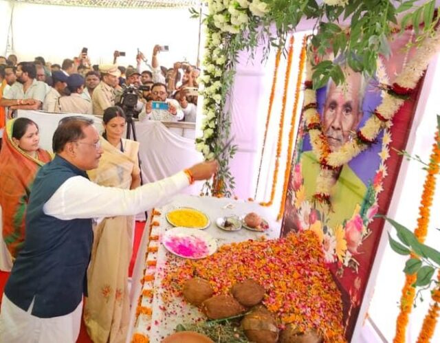 रायपुर : मुख्यमंत्री श्री विष्णु देव साय आज पाटन(दुर्ग ) के नजदीक स्थित ग्राम सोनपुर में आयोजित स्व. श्री मोहन कुंभकार की श्रद्धांजलि सभा में सम्मिलित हुए। इस अवसर पर मुख्यमंत्री श्री साय ने स्व.श्री मोहन कुंभकार के छायाचित्र पर पुष्प अर्पित कर श्रद्धांजलि दी और उनके योगदान को स्मरण करते हुए उन्हें श्रद्धासुमन अर्पित किया। मुख्यमंत्री श्री साय ने शोकसंतप्त परिवार के प्रति गहरी संवेदना व्यक्त करते हुए कहा कि स्व. मोहन कुंभकार ने सामाजिक जीवन में सराहनीय कार्य किए। उनका जाना हम सभी के लिए एक अपूरणीय क्षति है। उन्होंने ईश्वर से प्रार्थना की कि परमपिता परमेश्वर दिवंगत आत्मा को अपने श्रीचरणों में स्थान दें और परिवार को इस कठिन समय में संबल प्रदान करें।