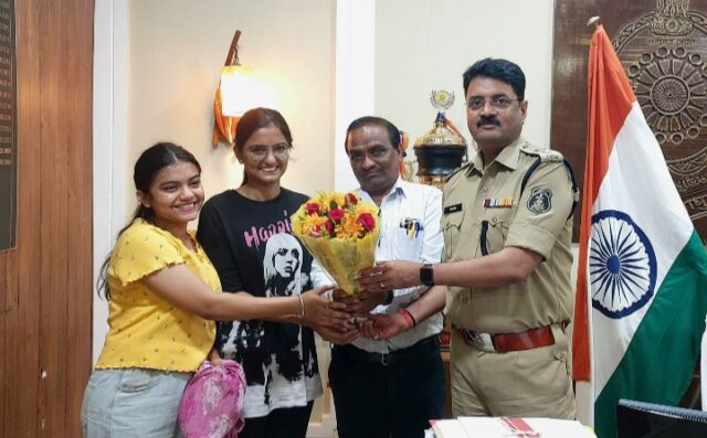 बिलासपुर। पुलिस अधीक्षक रजनेश सिंह ने ज़िले की होनहार बेटियों वेदांतिका और प्रिया का आज सम्मान किया साथ ही भविष्य के लिए शुभकामनाएँ दी। छत्तीसगढ़ बोर्ड की परीक्षा में बिलासपुर की बेटी 12वीं की छात्रा वेदांतिका शर्मा ने प्रदेश में 5वां रैंक हासिल किया है और वह सेंट जोसेफ कांवेंट इंग्लिश मीडियम स्कूल की छात्रा है।